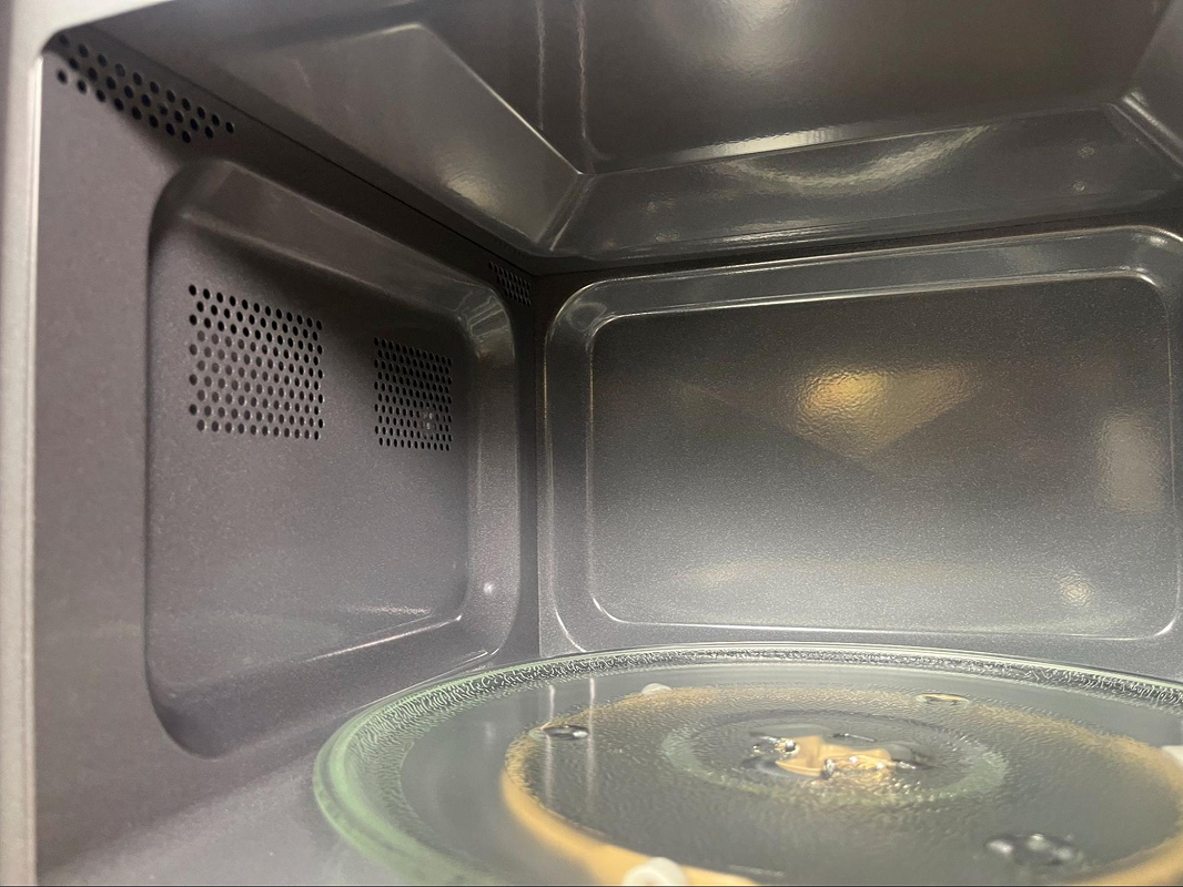 Внутреннее покрытие камеры – жаропрочная эмаль. Она не впитывает запахи, легко моется и хорошо переносит регулярное использование. Подсветка позволяет контролировать процесс разогрева, а крутящаяся основа обеспечивает равномерное распределение микроволн.