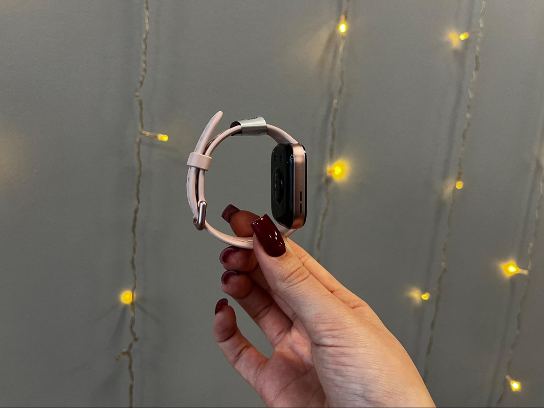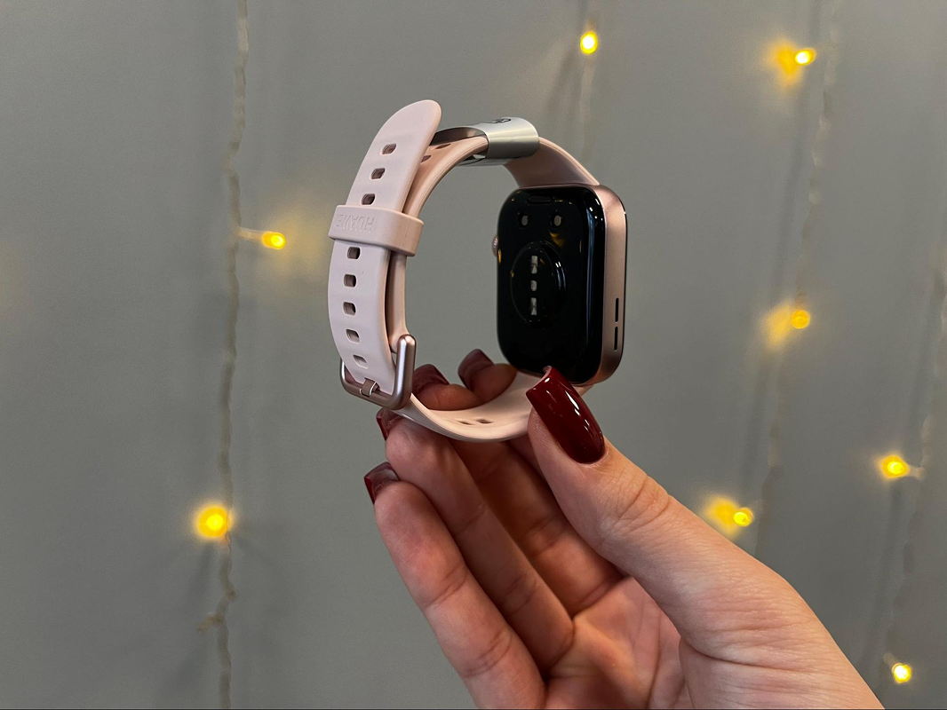 Watch Fit 3 получили прямоугольный корпус с мягко закруглёнными углами. Он выглядит аккуратно и современно – без спортивной грубости, но и без излишней «игрушечности». Корпус металлический, ремешок силиконовый, мягкий и комфортный – часы не давят и не мешают даже при длительном ношении.