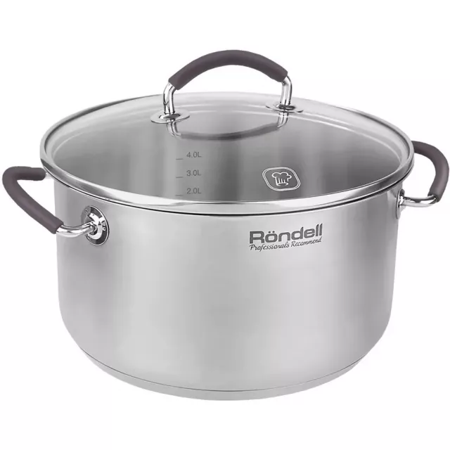 | Особенности | Материал: высококачественная нержавеющая сталь 18 / 10. Технология: тройное вштампованное, а затем вплавленное дно без воздушных полостей. Материал крышки: термостойкое стекло и нержавеющая сталь. Аксессуары: нержавеющая сталь и силикон. |